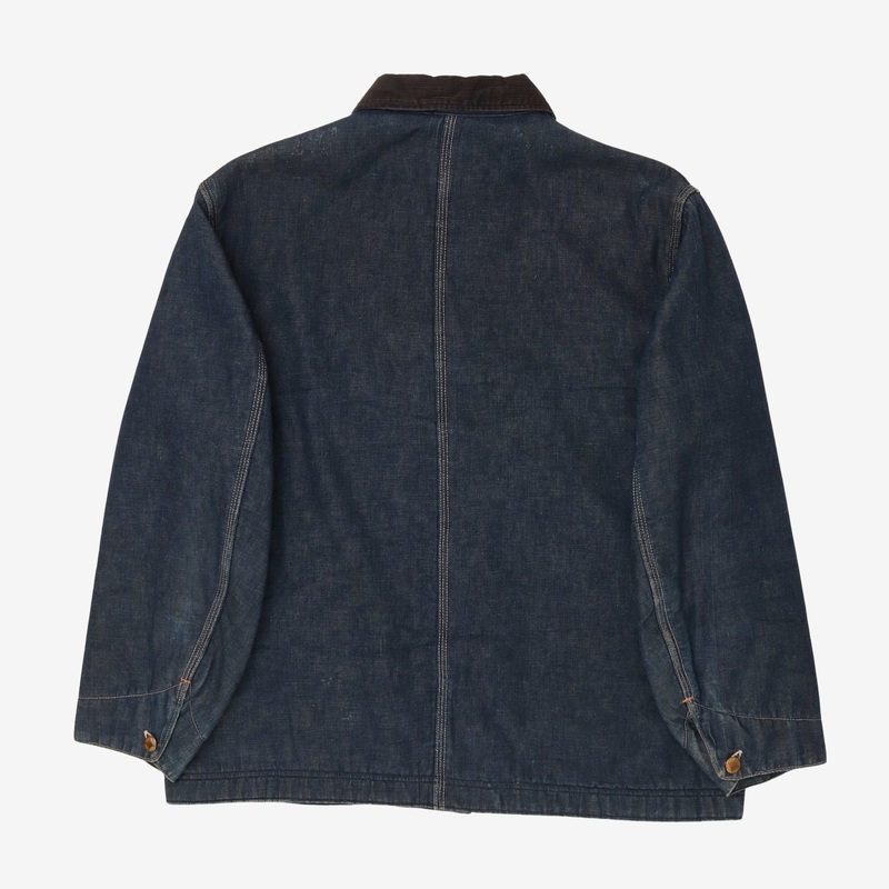 Similar item here: https://lalovelyvintage.com/products/vintage-1940-s-dark-wash-blanket-lined-denim-chore-coat