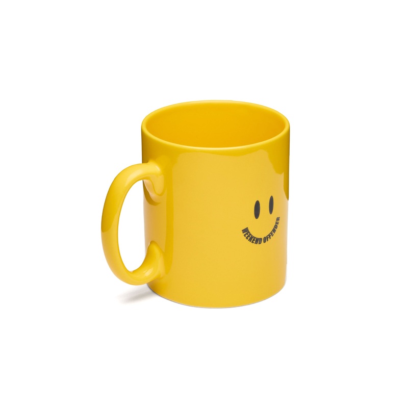Yellow ceramic mug featuring the signature ‘Smile’ graphic treatment.
