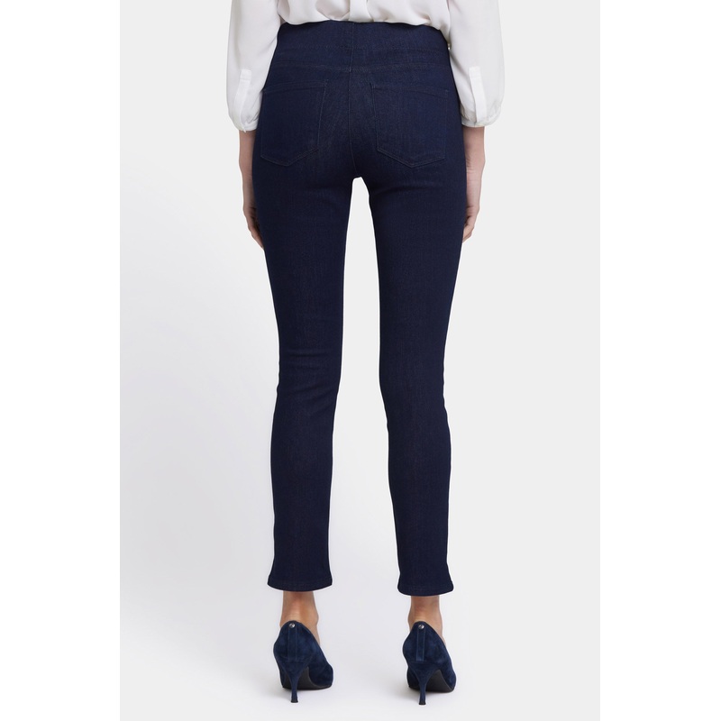 Its no big mystery why the Alina Legging Ankle Pull-On Jeans by NYDJ are a best-seller. This finely crafted jean makes an instant impression and quickly becomes a forever favorite for its timeless style and exceptional comfort. Premium denim in a striking dark blue wash gives this bold style a retro feel, while NYDJs Lift Tuck Technology uses a proprietary slimming panel with a patented criss-cross design to slim and shape curves. This jean hits just above the ankle and features functional back pockets and a pull-on waistband for added convenience.