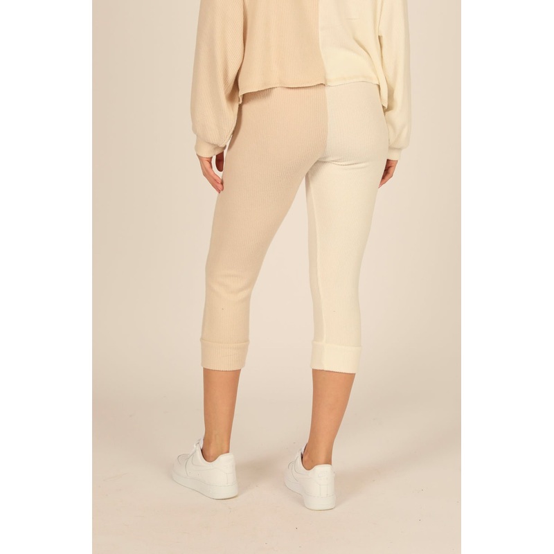 The Brushed Hacci Rib Split Jogger offers a comfortable, cropped fit perfect for warmer days. Crafted from a soft blend of rayon, polyester, and spandex, it provides gentle stretch and breathability. Available in a subtle Summer White and Light Taupe, this jogger combines style with ease of caresimply hand wash cold and dry flat to maintain its quality. Ideal for casual wear with a refined touch.