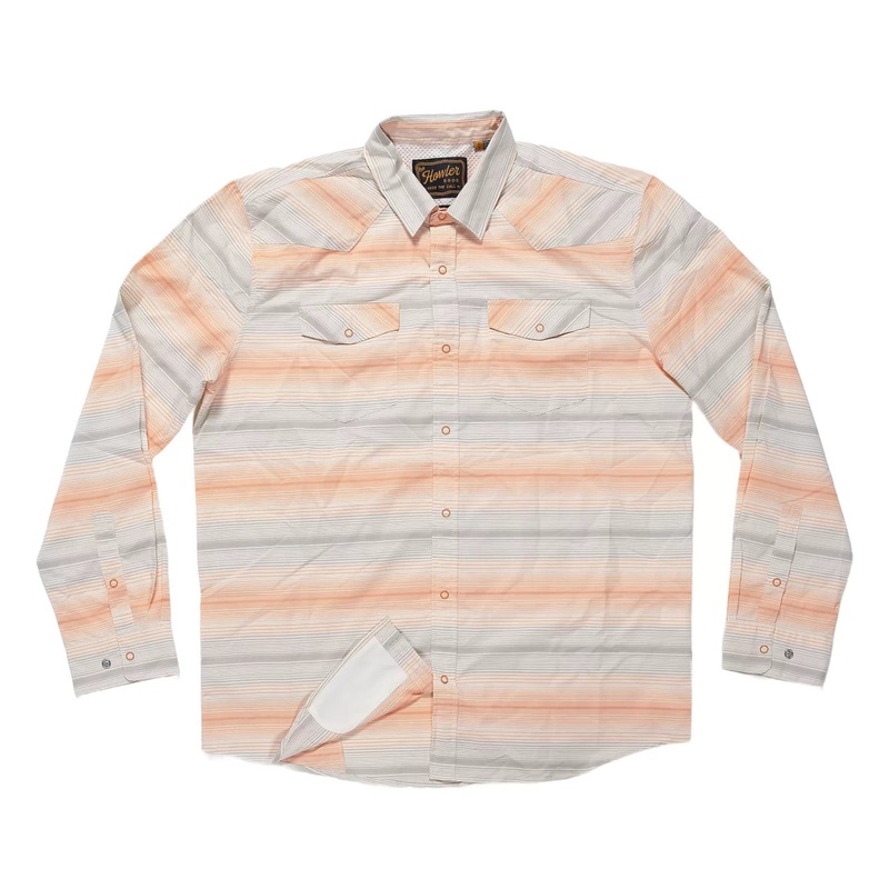 Attention to detail is evident in the design of the Howler Bros H Bar B Tech Longsleeve. The shirt incorporates a sunglasses-cleaning microfiber at the hem, allowing you to keep your vision clear without carrying extra gear. The ring snaps at the pockets and placket provide not only a secure closure but also add a subtle, rugged aesthetic that is both functional and fashionable. This shirt is an excellent choice for anyone looking for a blend of durability, comfort, and style in their wardrobe.