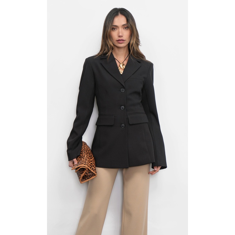 This impeccably tailored blazer offers a modern take on classic sophistication, designed to flatter and define your silhouette. The true highlight is its subtly “pinched” waist design, which creates a beautifully cinched effect, ensuring a polished and commanding presence without sacrificing comfort.